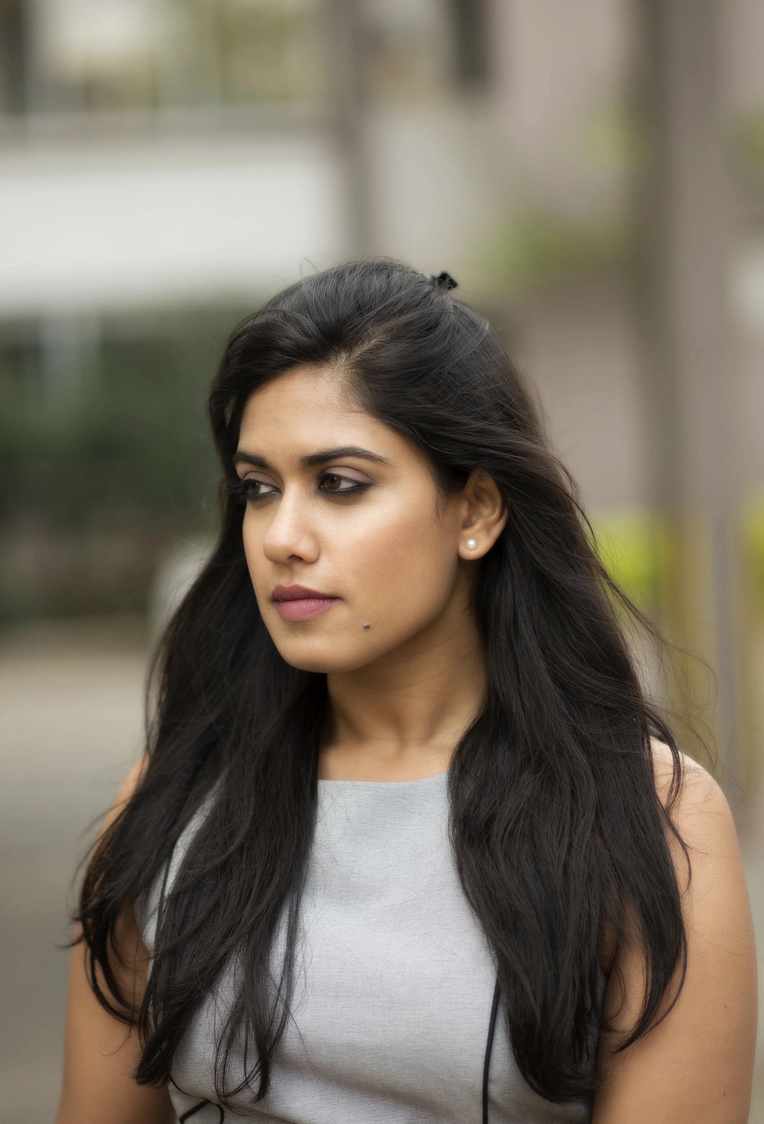 Smokey eyes! Except for my mom who finds it a bit harsh, I haven't come across anyone who is not a fan. And the good thing is that there are so many variations to choose from. A recent favourite of mine is the Reverse Smokey and my Wednesday pick for Asmita. As against all the drama on the upper lid, the lower lid is the focus for a reverse smokey eye. For me, it's a variation that is appropriate at the workplace. With a black kohl pencil, line your lower lash line. Smudge it out as low as you would like and set it with black eyeshadow. Now really smoke out the edges with a dark brown shadow to soften the look. I used 'Suede', a soft grey shade from Huda Beauty palette all over the upper lid to complement her dress. Smokey eyes are best complemented with neutral lips and I used Lolita from KatVonD for this look.