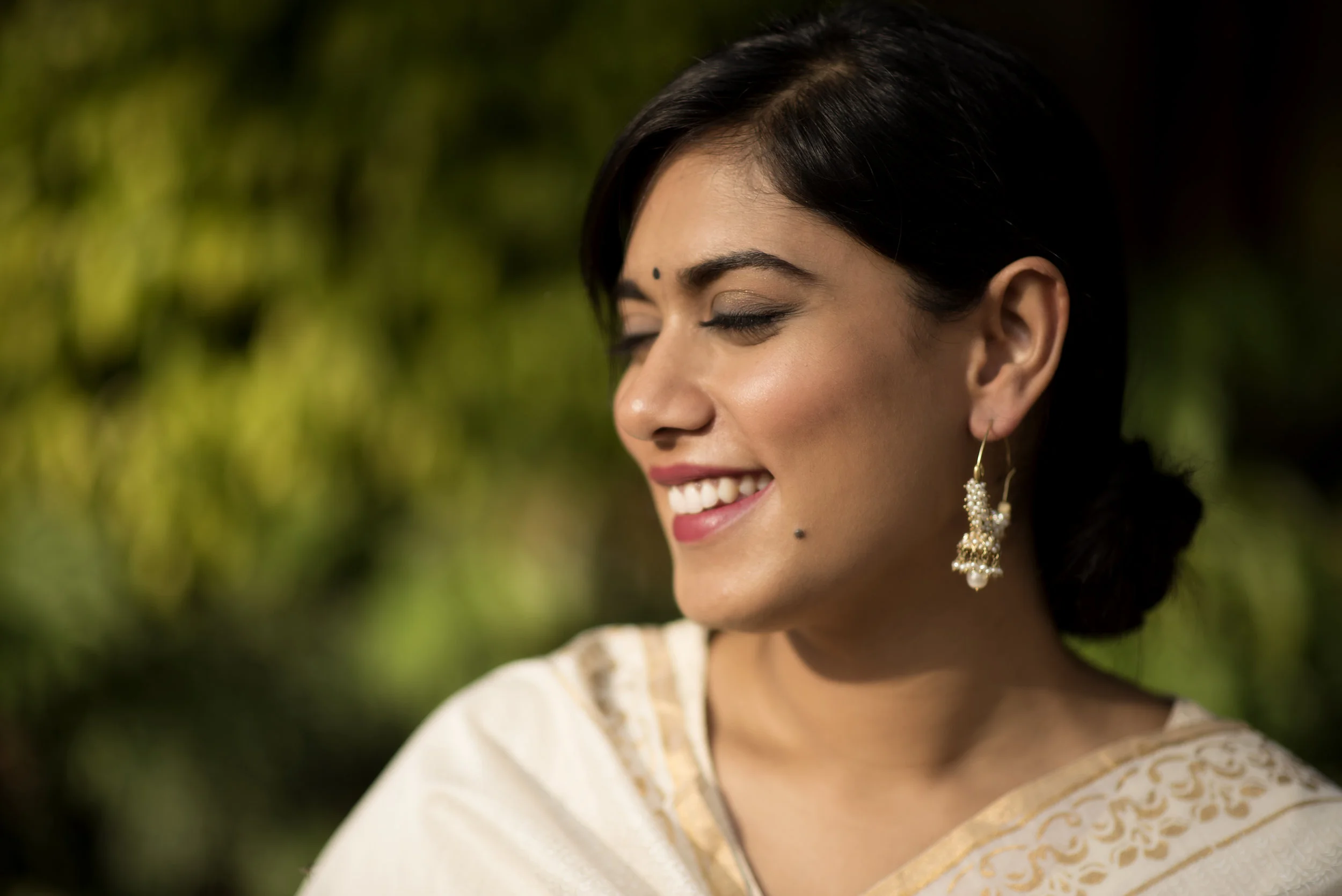 It's a fresh start to the week! No matter how crazy your calendar looks, I bet you don't want to show it on your face. Dewy, Fresh, Subtle is my choice of makeup for Asmita. 'Moon Dust' from Huda Beauty Eyeshadow palette is applied all over the lids for a subtle glow. Eyes are tight lined and mascara is generously applied to make the lashes look thicker and fuller. Lips are filled in with NARS Bansar, one of my go-to nude brown shades. And for that fresh bronzy glow, I used Bobbi Brown Shimmer Brick in Bronze along the cheekbones. You think that could take more than 10 minutes on a manic Monday morning. Of course not :-)