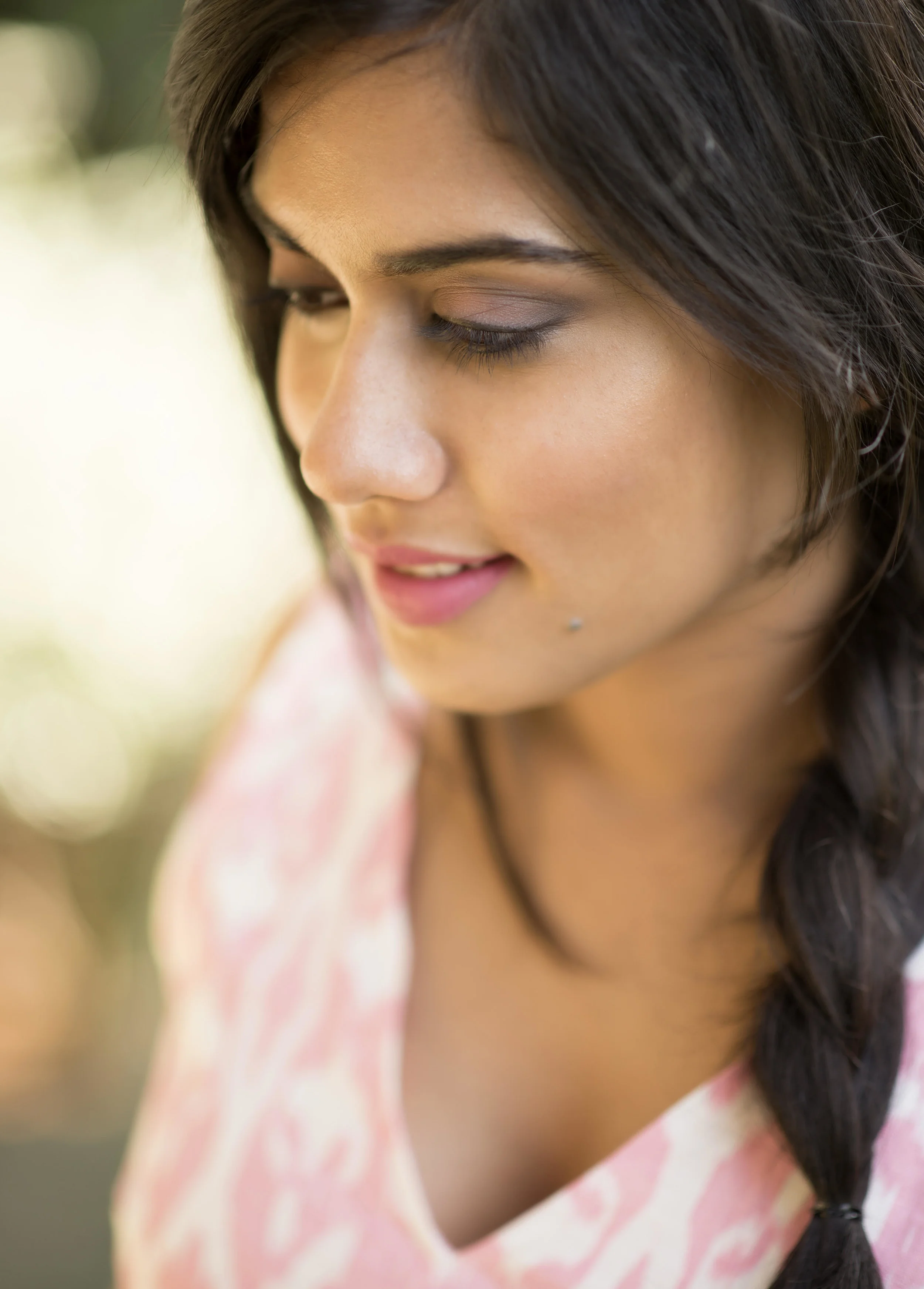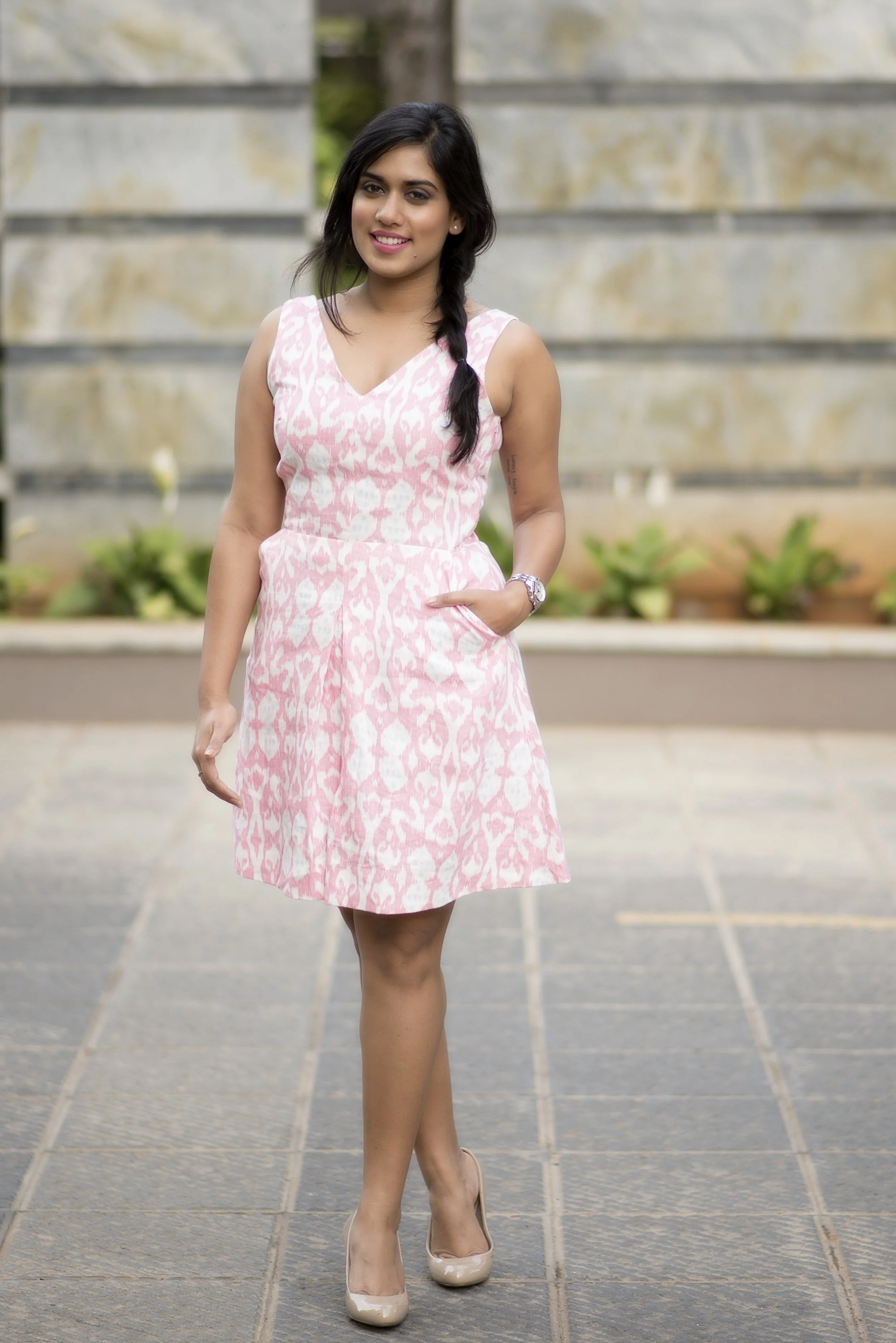 Pink is girly, Pink is fun! And what better colour to kickstart the weekend with ! When Asmita chose this cute pink pocket dress as her Friday outfit, I found a perfect match for her lips in Huda Beauty's Gossip Girl, a shade which Huda describes as "the everyday cute pink." Pink lips are the highlight of this look. The subtle pink eyeshadow which goes a little darker in the outer 'v' and a pop of powder pink blush just on the apples complete the look.
